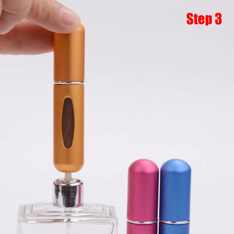 3) insira o atomizador verticalmente no tubo da garrafa de perfume, pressione para cima e para baixo repetidamente até que se reencha torna-se,